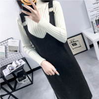 顺崇2018春春韩版吊带裙中长款纯色毛衣裙女装厚背带裙连衣裙潮