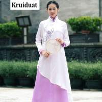 Kruidvat2017春季新款闲章长袖手绘茶服假两件连衣裙汉服不规则长裙B078