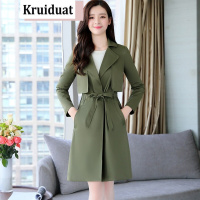 奈琴尔2017韩版秋季新款两件套修身中长款风衣外套 绿色 XL