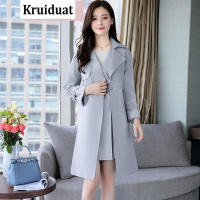 奈琴尔2017年秋季女装修身长袖外套系带中长款两件套新款风衣 灰色 XXL