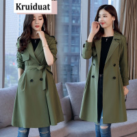奈琴尔2017秋季韩版中长款女装修身长袖风衣外套 绿色 XXL