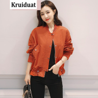 奈琴尔2017秋季新款韩版修身显瘦短款风衣女气质女装夹克外套 咖红 L