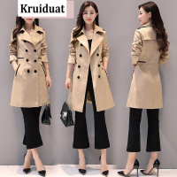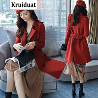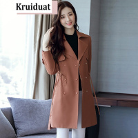 奈琴尔2017秋季新款长袖风衣女中长款双排扣纯色韩版大衣外套女