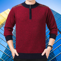 男式羊绒衫圆领拉链领加厚中年羊毛衫男冬季保暖爸爸装毛衣