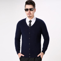 秋冬男式V领纯色毛衣开衫男装百搭羊绒外套中年保暖针织羊绒衫
