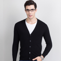 款纯山羊绒衫V领开衫针织男装外套羊绒衫男士修身毛衣潮男