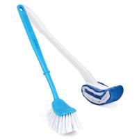 马桶刷双刷头洗厕所刷卫生间内沿沟槽洁厕刷套装长柄清洁刷子 E款(蓝绿随机)