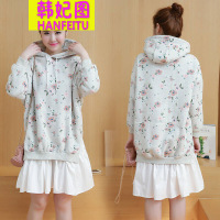 韩妃图(HANFEITU)2017秋冬小清新碎花加绒加厚卫衣孕妇连衣裙