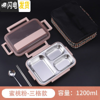三维工匠304不锈钢饭盒便当盒1人保温学生分格便携上班族餐盒分隔型套装女 蜜桃粉-三格+保温袋