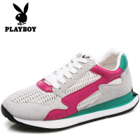花花公子女鞋内增高运动鞋女春季新款2017百搭韩版跑步鞋透气网鞋