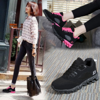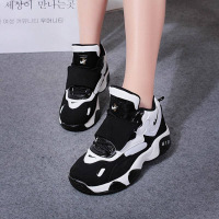 韩版运动鞋女春季新款学生内增高黑色跑步鞋子网面厚底透气板鞋夏