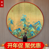 千里江山图国画山水画现代中式客厅装饰画办公室实木书房有框挂画