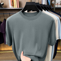 夏季感桑蚕丝男圆领短袖t恤休闲简约男装纯色无痕冰丝棉半袖