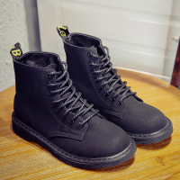 2017秋冬新款马丁靴低跟圆头纯色休闲保暖系带单靴短筒女靴子