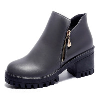 秋冬新款马丁靴女短靴圆头侧拉链粗跟休闲女靴英伦风短筒单靴女鞋