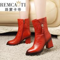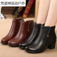 中年女靴子中跟粗跟女鞋冬季真皮中老年单靴女春秋短筒妈妈鞋短靴