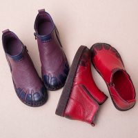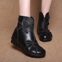 休闲复古手工女靴秋冬新款五指短筒单靴妈妈鞋真皮软底短靴子女