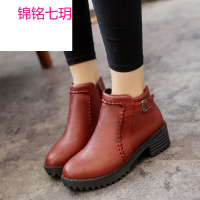 女靴春秋单靴2017新款短筒百搭休闲短靴女磨砂马丁靴女复古粗跟潮