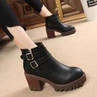 红蜻蜓马丁靴女春秋休闲鞋女粗跟圆头短靴女户外工装鞋女鞋