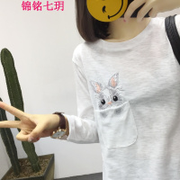 锦铭七玥2018春季新款女装长袖T恤韩版卫衣精工刺绣兔子口袋棉打底衫