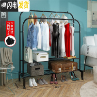 三维工匠单杆晾衣架落地卧室折叠晒衣架家用凉衣服被子简易室内挂衣架 黑色105cm宽-弯腿双杆双层+送轮子 晾衣架配件