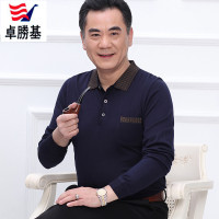 卓勝基中年男士长袖T恤翻领中老年男羊毛体恤衫口袋爸爸装春秋季薄款