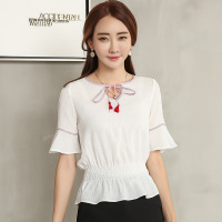 古莱登(GODLIKE)2017夏季新款五分喇叭袖雪纺衫白色上衣女装修身小衫百搭