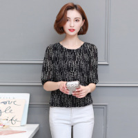 薇侣2017夏装新款字母印花雪纺衫中短袖T恤宽松小衫女