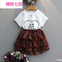 锦铭七玥2017夏季新款童套装 韩版女童字母印花T恤+碎花半身裙两件套 套装