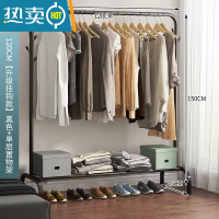 敬平衣架家用落地挂衣架简约现代卧室置衣架室内小型晾衣架简易衣帽架 120cm[升级挂钩款]黑色+单层置物架