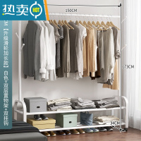 敬平衣架家用落地挂衣架简约现代卧室置衣架室内小型晾衣架简易衣帽架 150cm[升级滑轮加长款]白色+双层置物架+双挂钩