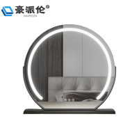 森美人北欧创意金色化妆镜子梳妆台圆形台式镜卧室镜浴室镜卫生间镜子