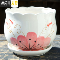 三维工匠大号特大号花盆陶瓷带托盘绿萝吊兰绿植简约家用多肉花盆 粉小花朵单个特大 20-22cm花盆容器