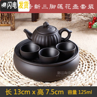 三维工匠茶具套装紫砂茶壶茶盘茶道整套陶瓷宜兴功夫办公室家用 黑色新三脚莲花壶套装 5件