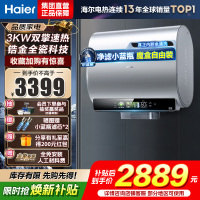 海尔(Haier)热水器小蓝瓶净水洗超薄扁桶家用电热水器3500W变频[3D MAX加热]小魔盒双胆BK7 60L
