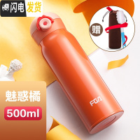 三维工匠保温杯男女士316不锈钢学生韩版清新文艺便携随手水杯子500 魅惑橘(304不锈钢)