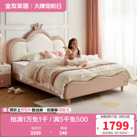 全友家居儿童床简约现代加高软包床屏小户型次卧室实木床脚公主床