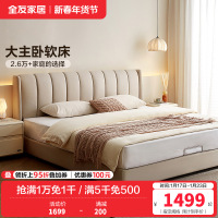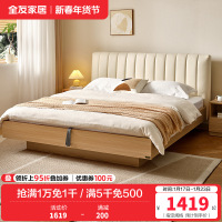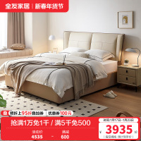全友家居新中式卧室生态科技皮舒适软靠床屏橡胶木板木床双人床