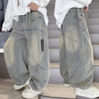 男童春装牛仔裤春秋款2026新款大儿童装痞帅宽松直筒阔腿裤子男孩