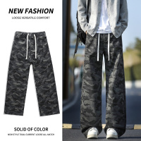 迷彩牛仔裤男生美式cleanfit微喇迷彩裤子显高男女款多口袋工装裤