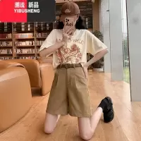 YIBUSHENG洗水棉西装短裤女季新款外穿高腰显瘦宽松休闲a字阔腿五分中裤