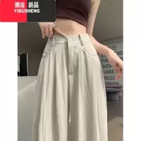 YIBUSHENG高腰阔腿裤女装2024装新款宽松垂感休闲卡其色九分直筒裤子