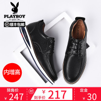 花花公子内增高男鞋秋季新款男士商务黑色休闲皮鞋韩版真皮鞋子男