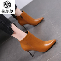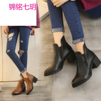 尖头细跟时装靴女25秋冬新款欧美中跟气质短靴踝靴31小码女式棉靴