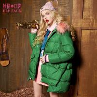 妖精的口袋 自由走天下 冬装宽松前短后长毛领连帽羽绒服女中长款