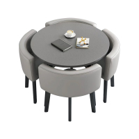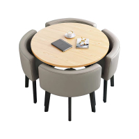 中豫鑫泽ZYXZ4100925 简约接待桌椅洽谈桌椅 一桌四椅 灰色圆桌浅灰皮椅