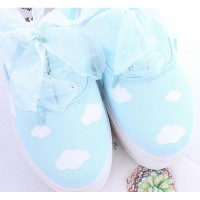 蓝色手绘鞋夏春休闲文艺小清新森女系帆布鞋松糕厚底女鞋潮软妹