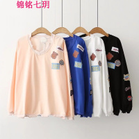锦铭七玥日系森女系 甜美休闲剪边领宽松套头显瘦长袖卫衣 女装