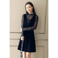 2018春季连衣裙韩版背带裙两件套纯色收腰连衣裙藏青色