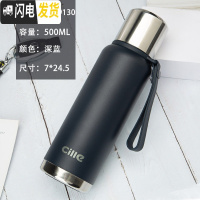 三维工匠保温杯女水杯真空不锈钢户外儿童学生便携杯子成人男户外茶杯 DS-033蓝色500